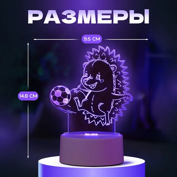 Светильник 3D ночник RISALUX «Ежик футболист», LED RGB, от сети, 14.7×9.5×14.8 см — Характеристики