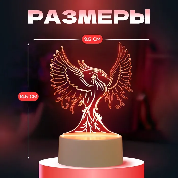 Светильник 3D ночник RISALUX «Феникс», LED RGB, от сети, 12×9.5×14.5 см — Характеристики