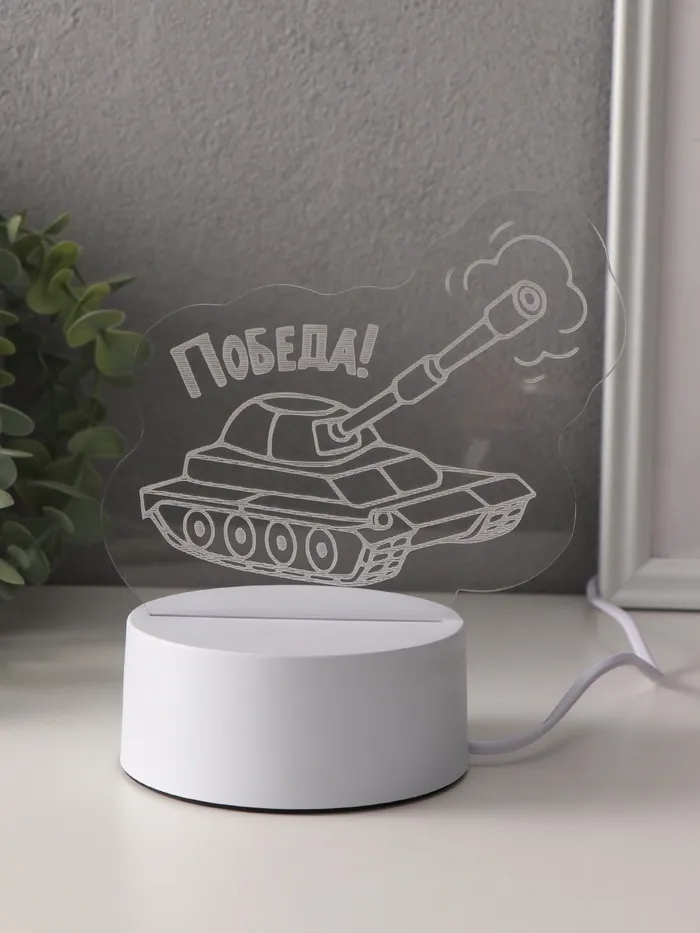 Светильник 3D-ночник RISALUX «Фигурка танк. Победа!», LED, RGB, от сети, 9.5×15×13.8 см — Характеристики