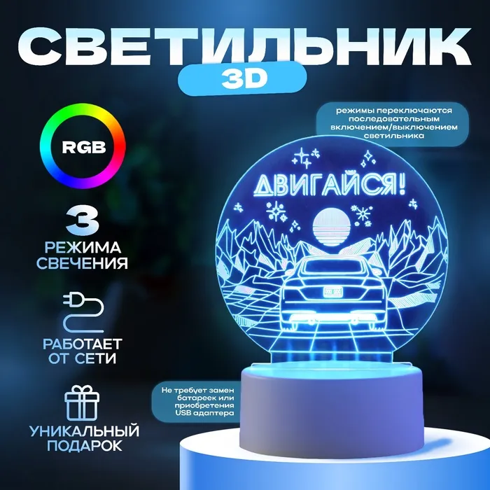 Светильник 3D ночник RISALUX «Каждую минуту люблю тебя», LED RGB, от сети — Характеристики