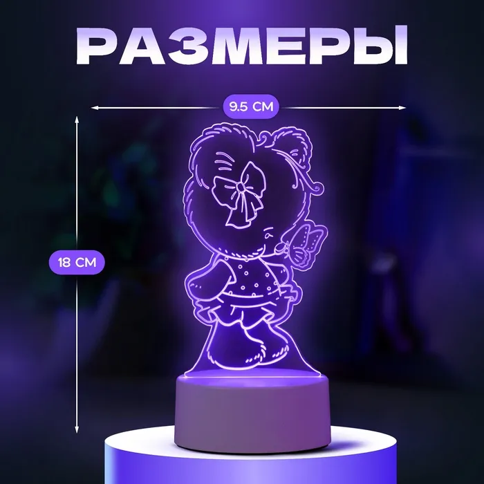 Светильник 3D ночник RISALUX «Медвежонок», LED RGB, от сети, 9.7×9.5×18 см — Характеристики