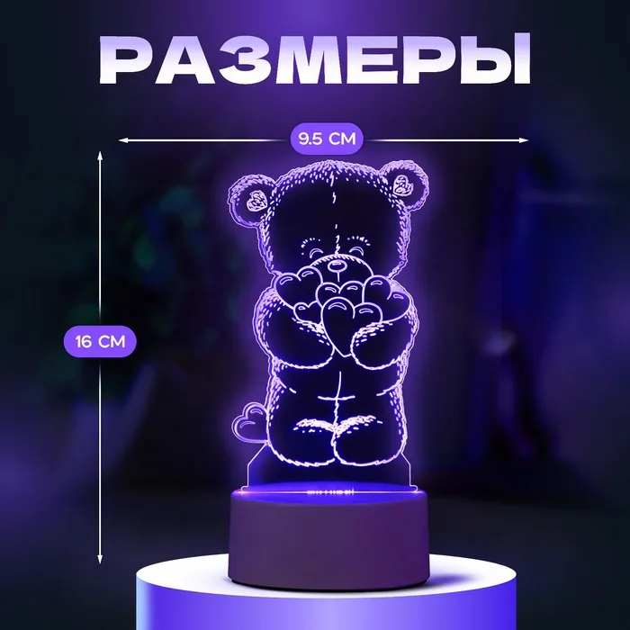 Светильник 3D ночник RISALUX «Мишутка», LED RGB, от сети, 9.5×9.5×16 см — Характеристики