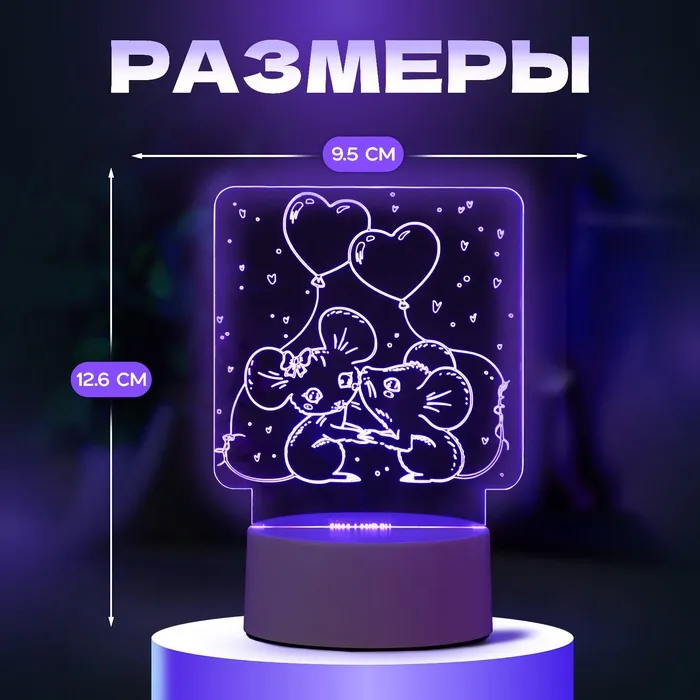 Светильник 3D ночник RISALUX «Мышата», LED RGB, от сети, 11.2×9.5×12.6 см — Характеристики