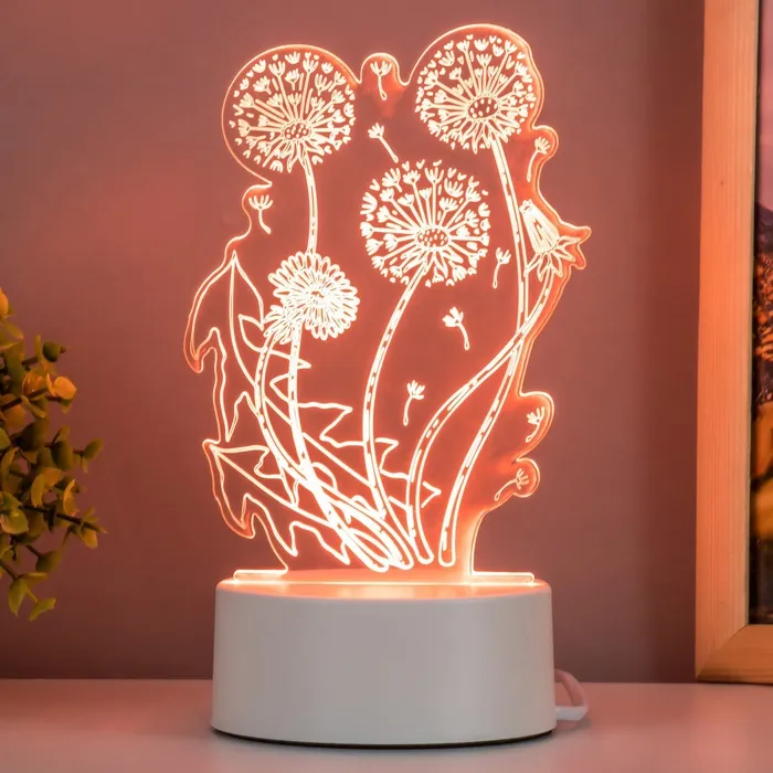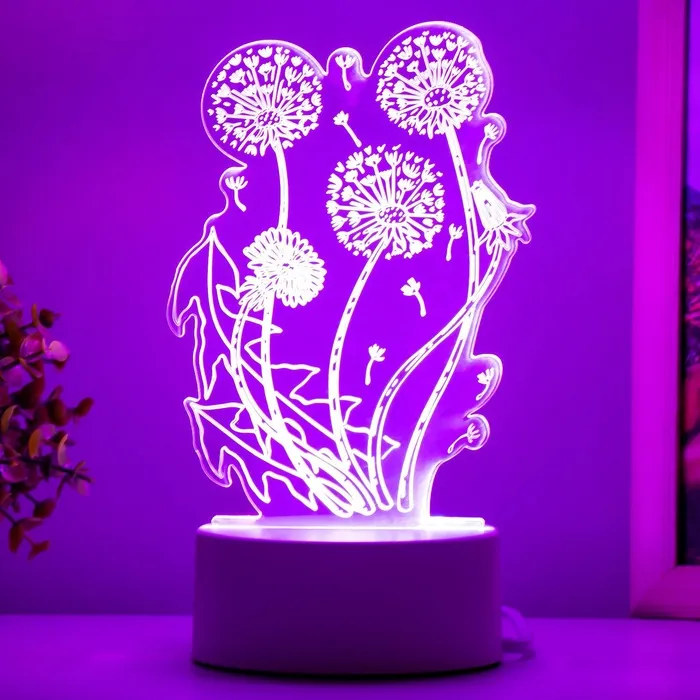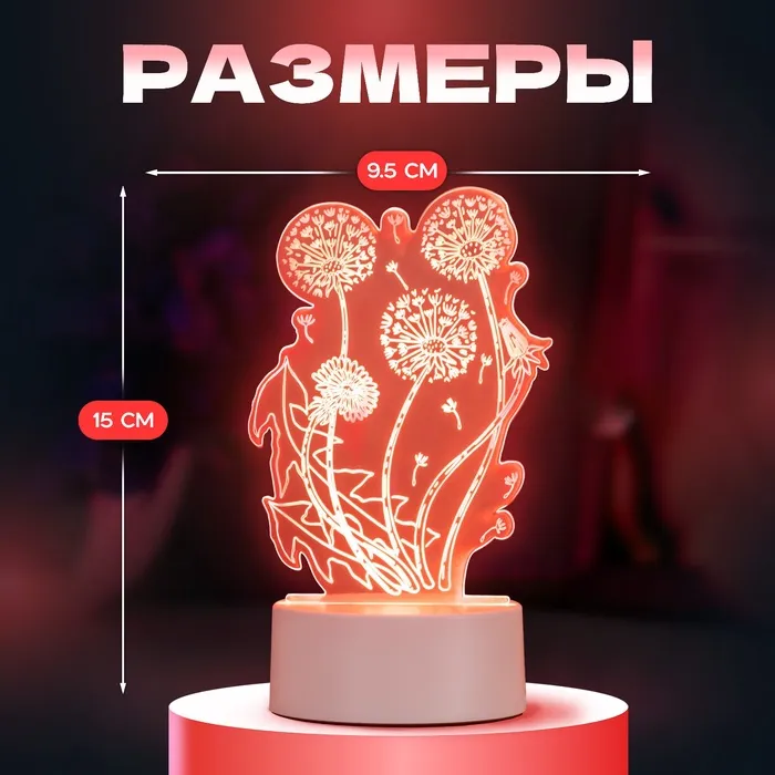 Светильник 3D ночник RISALUX «Одуванчик», LED, белый, 11×9.5×15 см — Характеристики