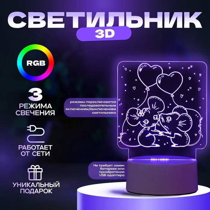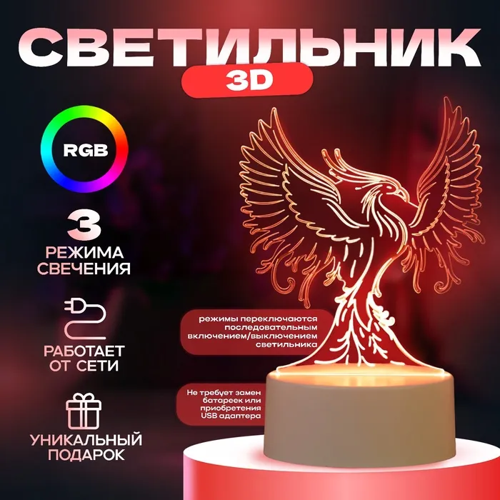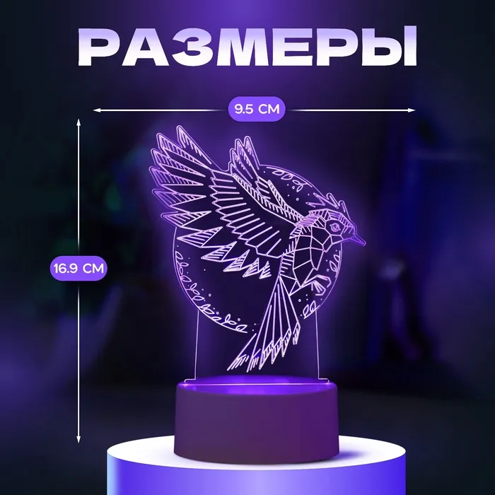 Светильник 3D ночник RISALUX «Птица», LED RGB, от сети, 13.5×9.5×16.9 см — Характеристики
