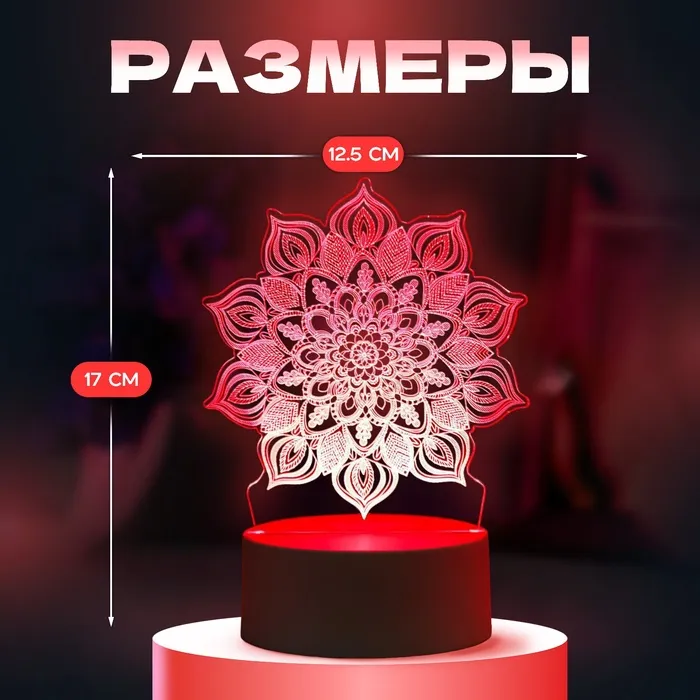Светильник 3D ночник RISALUX «Сандала», LED RGB, от сети, 9.5×12.5×17 см — Характеристики