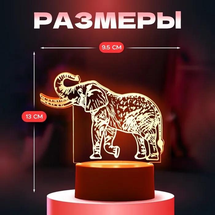Светильник 3D ночник RISALUX «Слон», LED белый 16×9.5×13 см — Характеристики