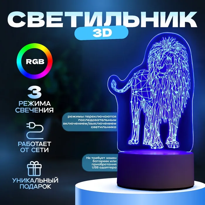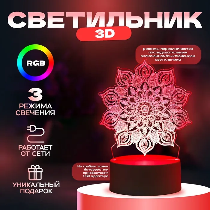 Декоративный сетевой светодиодный светильник с 3D-рисунком станет отличным украшением прикроватной тумбы или детской комнаты. Во включённом состоянии появляется глубина и объём изображения. После покупки обязательно отклеивайте бумажную основу (без применения посторонних предметов, чтобы не поцарапать поверхность).