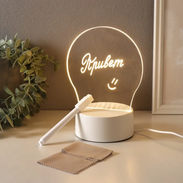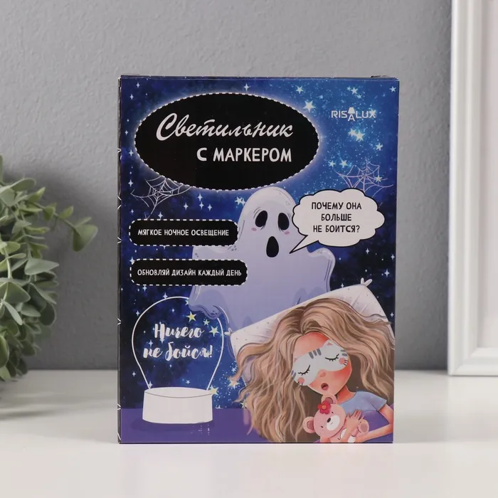 Светильник 3D RISALUX «Ничего не бойся!», LED-ночник с маркером и протиркой, RGB, от USB, 10×13.5×18 см