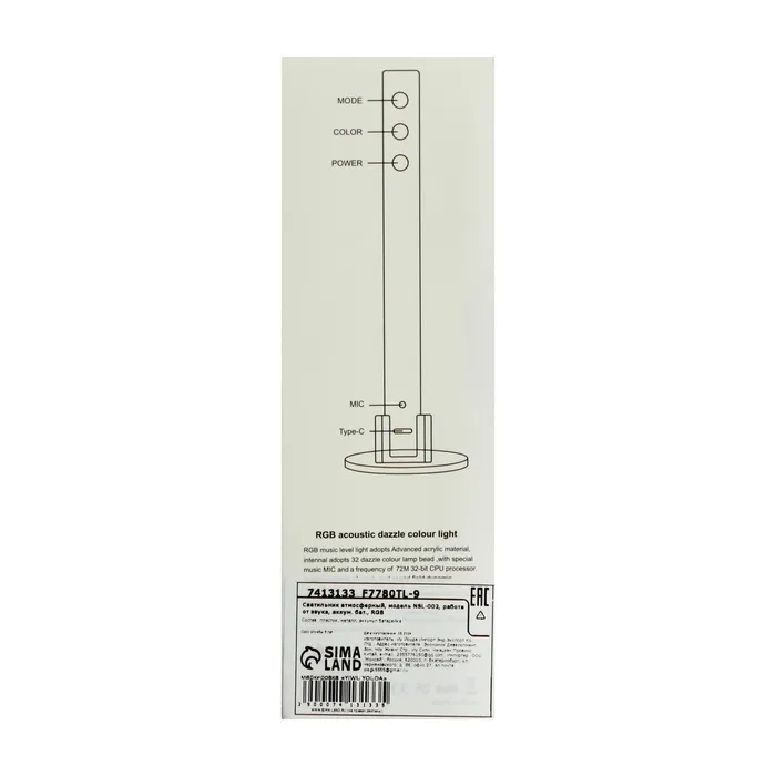 Светильник атмосферный NSL-002, работа от звука, аккум. бат., RGB — Характеристики