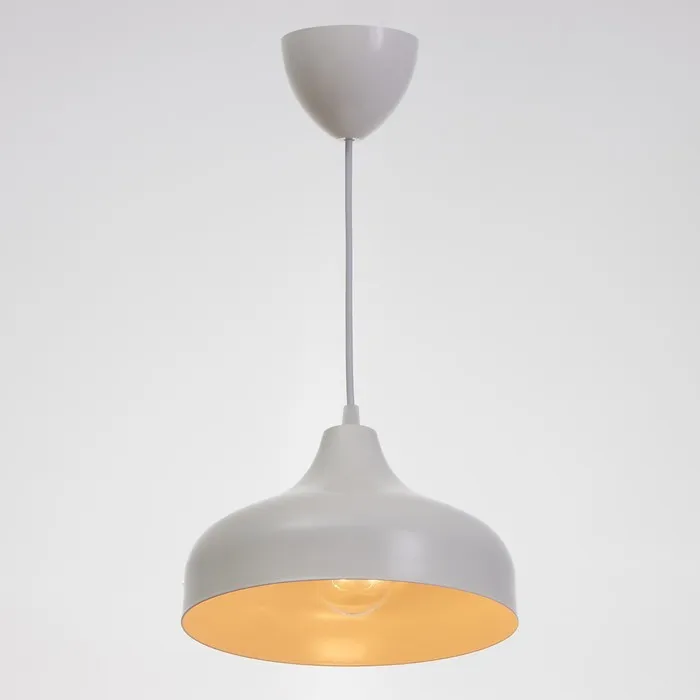- Современный дизайн: белый металлический плафон в форме конуса добавляет интерьеру легкость и стиль.