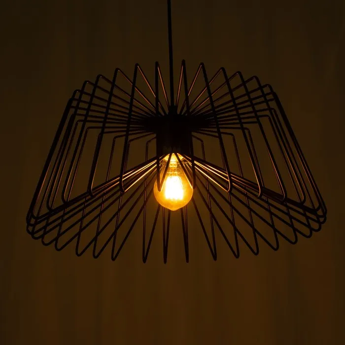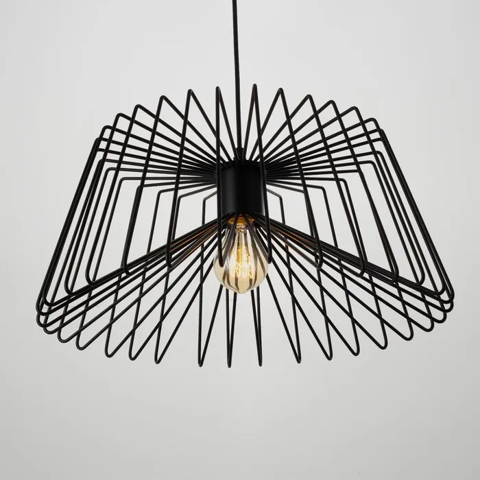 Светильник выполнен в стиле лофт. Подвес рассчитан на лампу 40 Вт, патрон E27, идеально сочетается с лампой Эдисона. Корпус светильника выкрашен в чёрный. Высота регулируется.