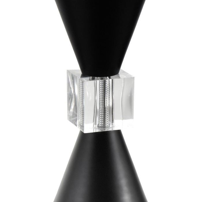 - Прочный металлический корпус: Основание и плафон изготовлены из металла. Черный матовый цвет и нестандартная круглая форма плафона делают модель заметным элементом декора. Степень защиты IP20 определяет применение в сухих помещениях.