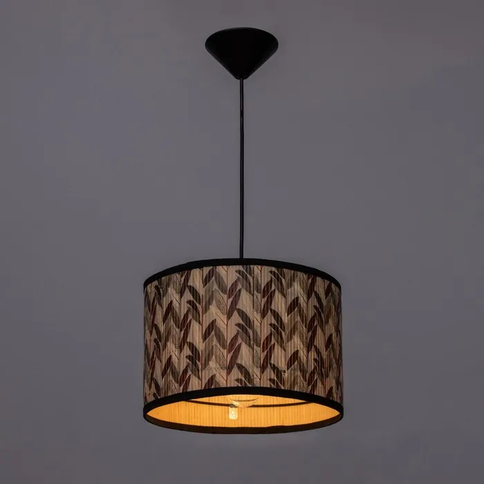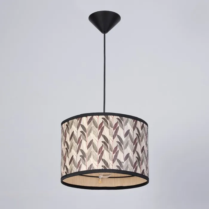 Cтильный и оригинальный аксессуар, который украсит вашу спальню или кухню. Изготовлен из пластика черного цвета, с разноцветным текстильным абажуром, который придает ему яркую и необычную внешность. Цилиндрическая форма плафона направлена вниз, обеспечивая равномерное распределение света и создавая уютную атмосферу.