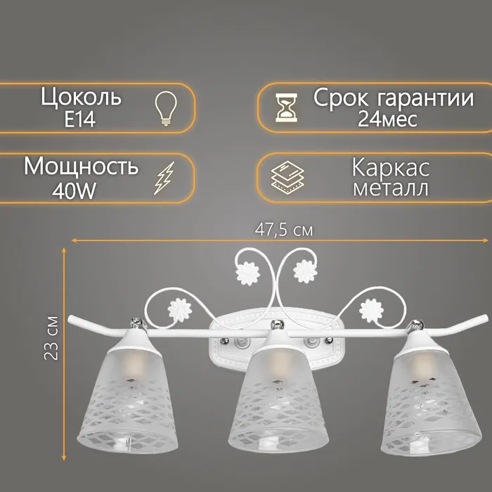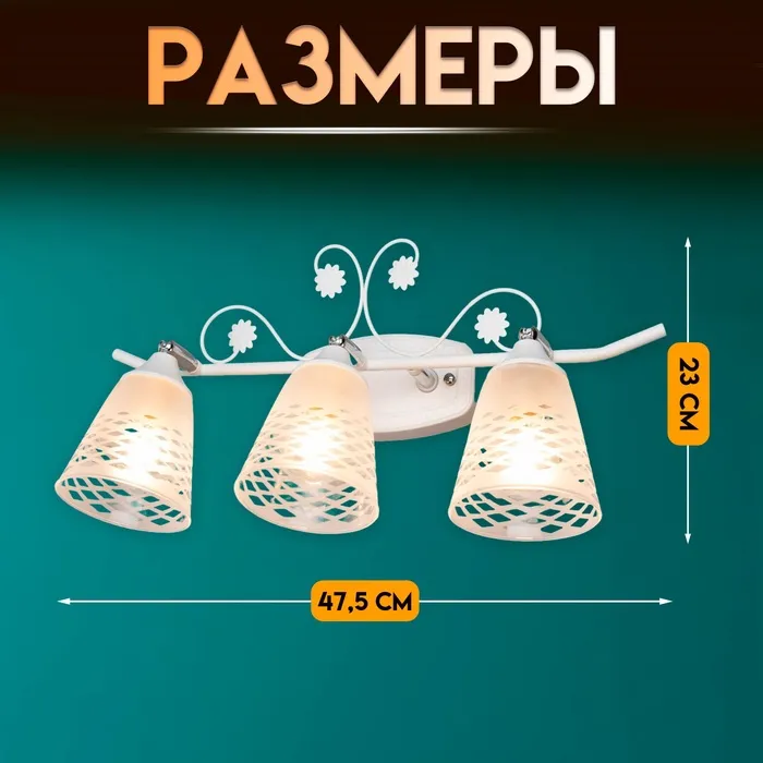 Светильник бра настенный BayerLux «Богемия», 3×E14, 40 Вт, белый, 47.5×23×23 см — Характеристики