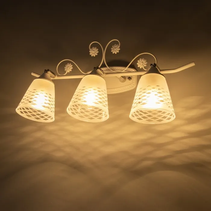 • Классический стиль: Белый металлический корпус и стеклянные плафоны создают гармоничный образ, который легко впишется в интерьер в стиле прованс, модерн или классика. Такое бра станет акцентом вашего пространства, добавляя нотку изысканности.