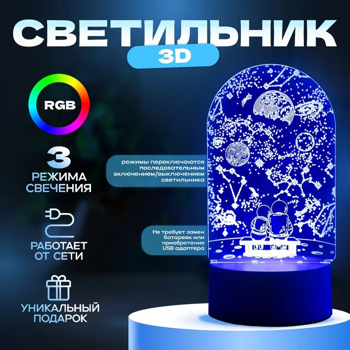 Декоративный сетевой светодиодный светильник с 3D-рисунком станет отличным украшением прикроватной тумбы или детской комнаты. Во включённом состоянии появляется глубина и объём изображения. После покупки обязательно отклеивайте бумажную основу (без применения посторонних предметов, чтобы не поцарапать поверхность).
