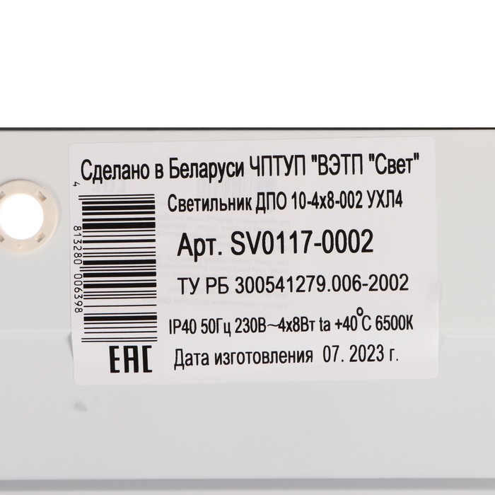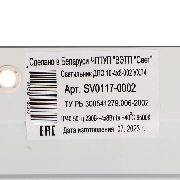 Светильник ДПО 10-4х8-002 УХЛ4 призма 6500К, 3600 Лм, IP40 — Характеристики