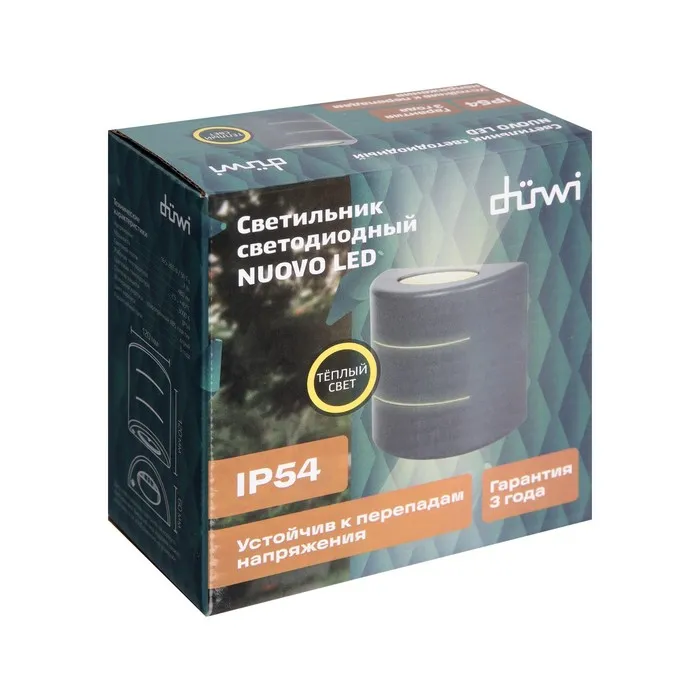 Стационарный архитектурный светильник Duwi Nuovo LED. Идеально подходит для установки на стену, как для внутреннего, так и для наружного использования. Встроенные светодиоды генерируют и излучают тёплый свет, который добавляет в атмосферу комфорта. Благодаря корпусу из термостойкого пластика и дополнительной защите от пыли и влаги, светильник долго прослужит в активном пользовании. Конструкция устройства позволяет произвести лёгкий монтаж на твёрдые стены.