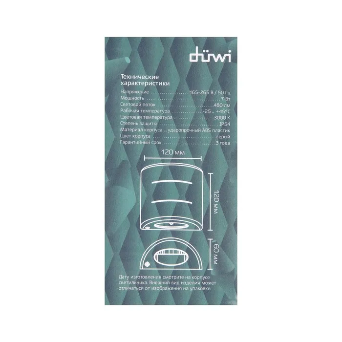 Светильник Duwi Nuovo LED, 7 Вт, 3000 K, IP54, архитектурный, широкий луч, серый — Характеристики
