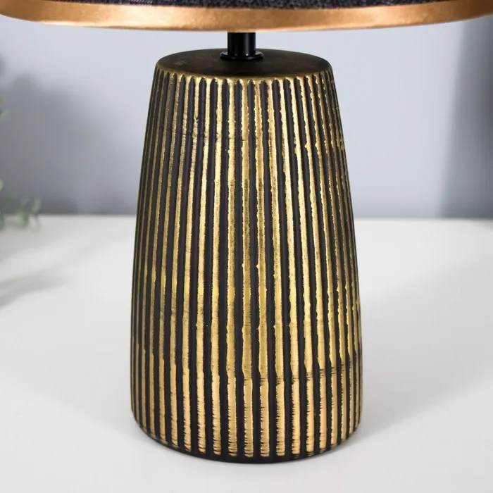 Эта элегантная настольная лампа с классическим дизайном добавит изысканности в ваш интерьер. Черный абажур с золотой патиной создает атмосферу уюта и стиля, идеально подходя для различных стилей оформления.