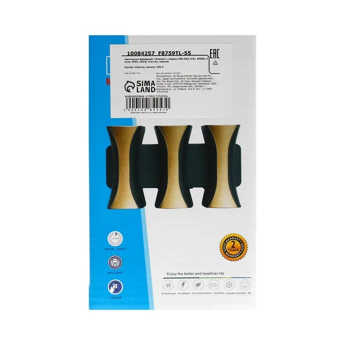 Светильник фасадный «Элегант», 6 Вт, 3000К, 3 луча, IP65, 220 В, пластиковый корпус, чёрный, свечение тёплое белое — Характеристики