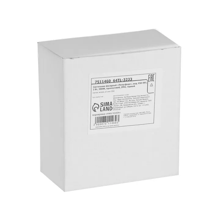 Светильник фасадный «Полусфера», FSD-007, 2Вт, 3000К, 1 луч, IP65, 220В, металл, черный — Характеристики