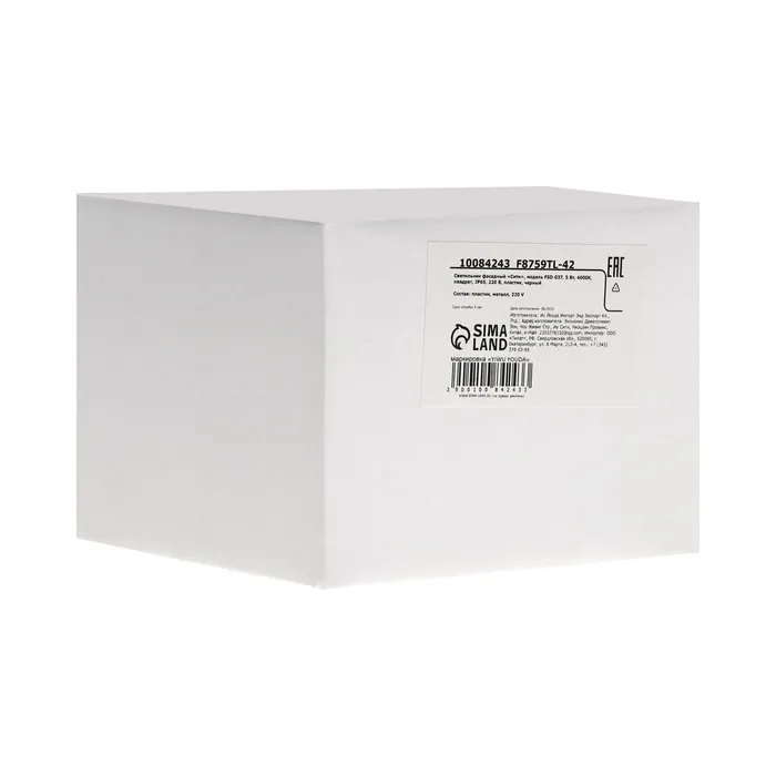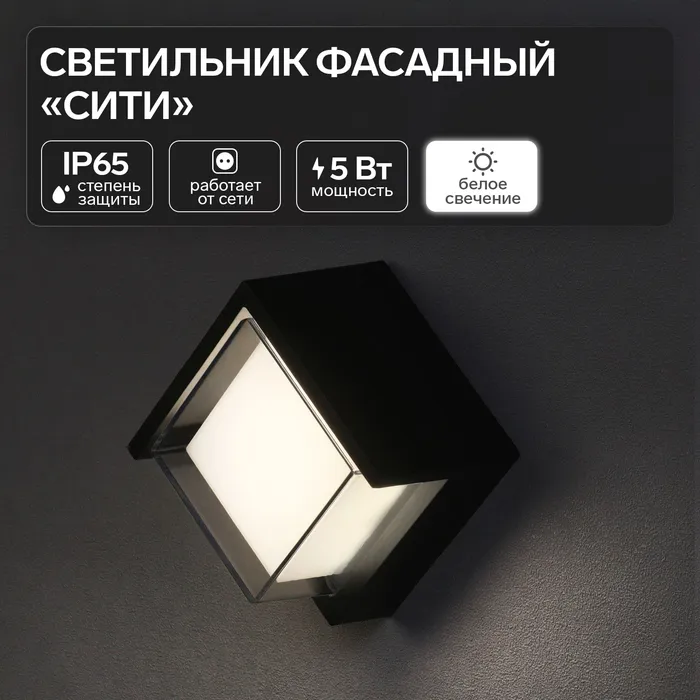 Светильник фасадный «Сити», FSD-037, 5 Вт, 4000К, квадрат, IP65, 220 В, пластик, черный — Характеристики