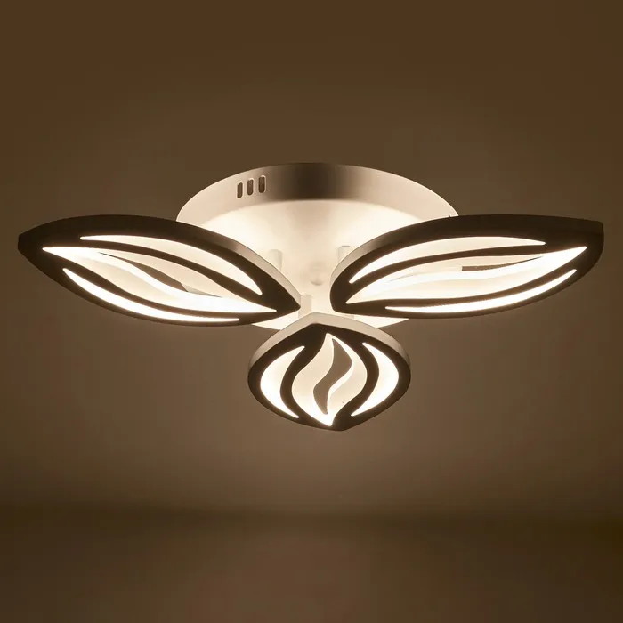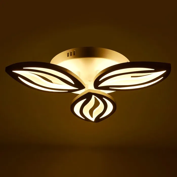 - Современный дизайн: Светильник имеет оригинальную форму с элементами, напоминающими лепестки или крылья, что придает ему изысканный и артистичный вид. Такой дизайн становится акцентом в любом помещении.