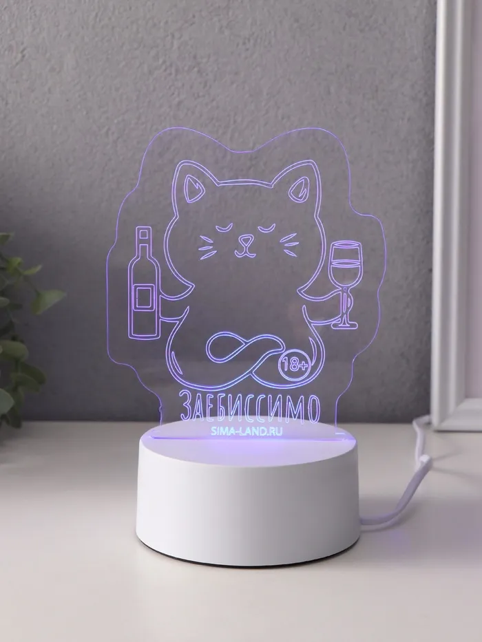 Светильник "Кот с вином. Заебиссимо" LED RGB от сети RISALUX 9,5х11,8х14,7 см — Характеристики