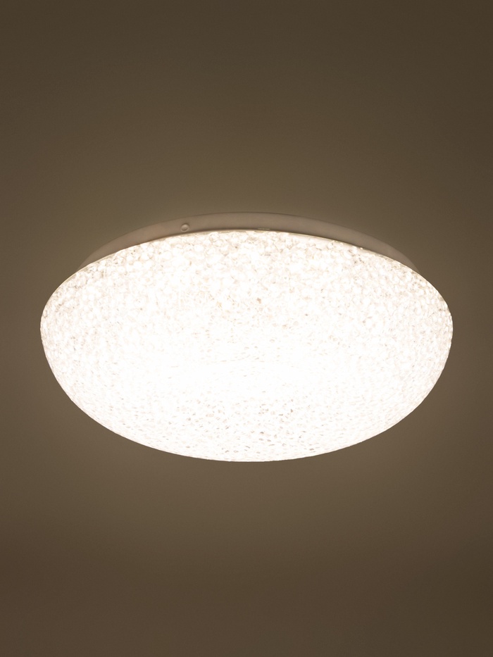 - Незаметный, но эффективный: Диаметр 25 см делает модель идеальной для помещений с умеренной площадью. Круглая форма и прозрачное исполнение не перегружают интерьер, но обеспечивают достаточную освещённость.