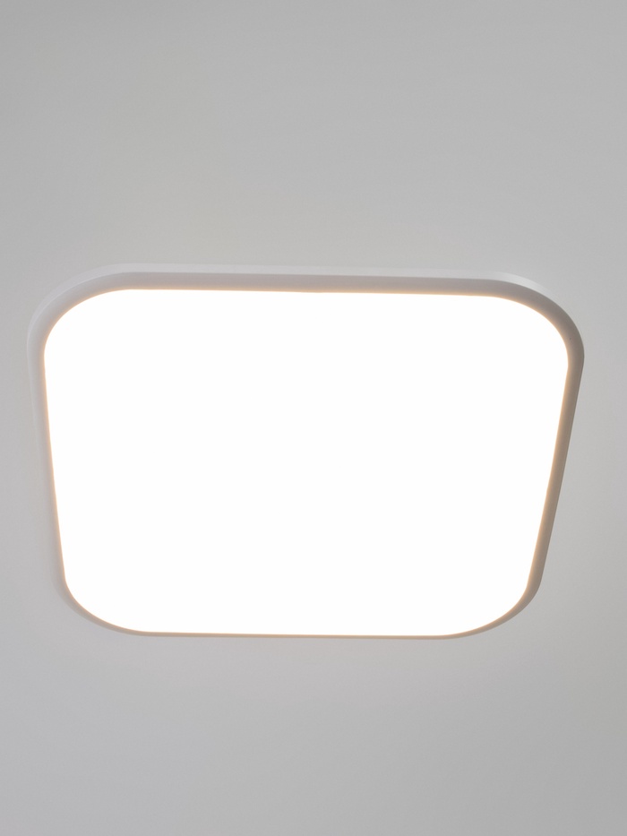 - Геометрия вместо излишеств: Квадратная форма добавляет современности даже в классический интерьер. Белый плафон и металлическое основание органично вписываются в минимализм, модерн, неоклассику и классику.