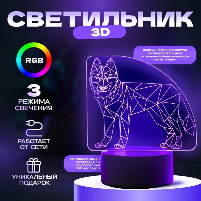 Декоративный сетевой светодиодный светильник с 3D-рисунком станет отличным украшением прикроватной тумбы или детской комнаты. Во включённом состоянии появляется глубина и объём изображения. После покупки обязательно отклеивайте бумажную основу (без применения посторонних предметов, чтобы не поцарапать поверхность).