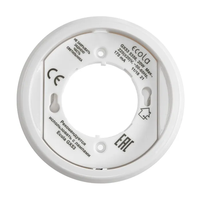 Светильник накладной Ecola 5356, GX53, IP20, 220 В, 18×95 мм, белый — Характеристики