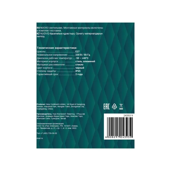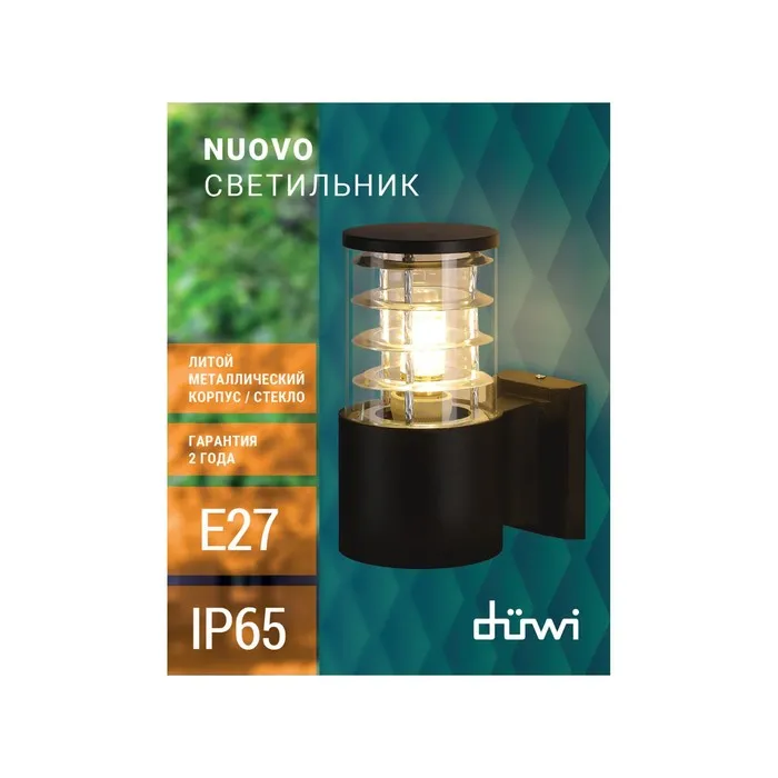 Светильник настенный, накладной Duwi TECHNO, 170х108х220мм, Е27, алюм/стекло, IP65, черный, — Характеристики