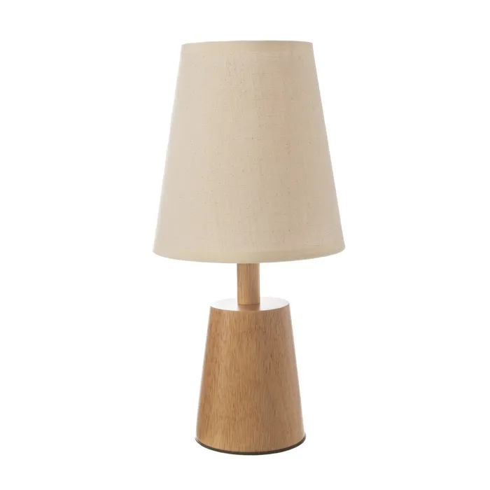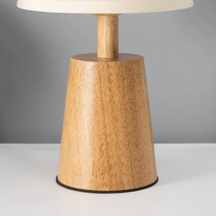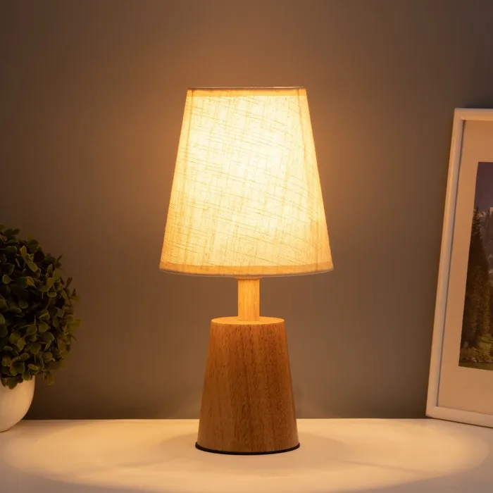 Эта настольная лампа с деревянным основанием и стильным абажуром станет прекрасным дополнением вашего интерьера. Её лаконичный дизайн и теплые тона создают уютную атмосферу в любом помещении.