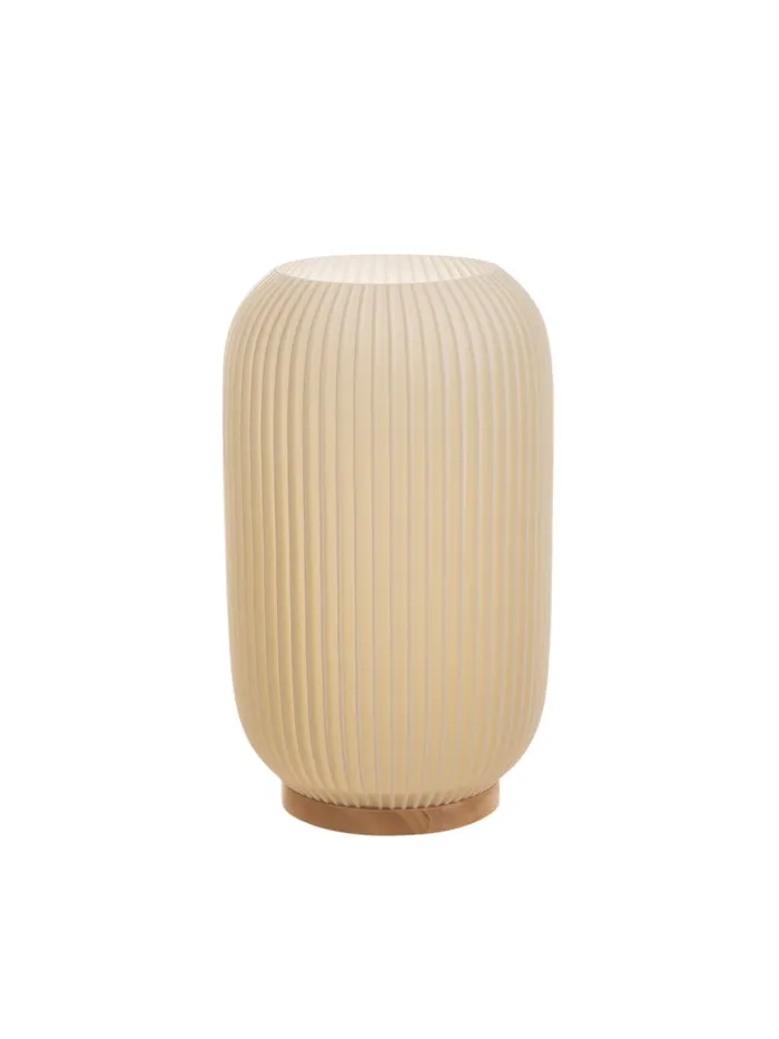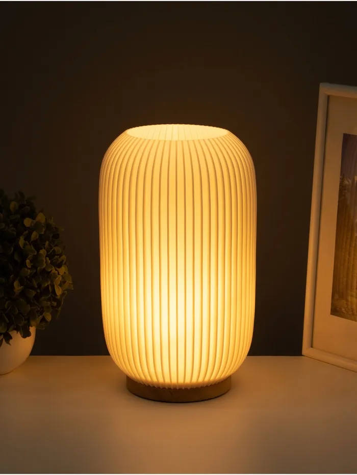 - Цилиндрическая форма абажура направляет свет вверх, создавая теплую атмосферу.