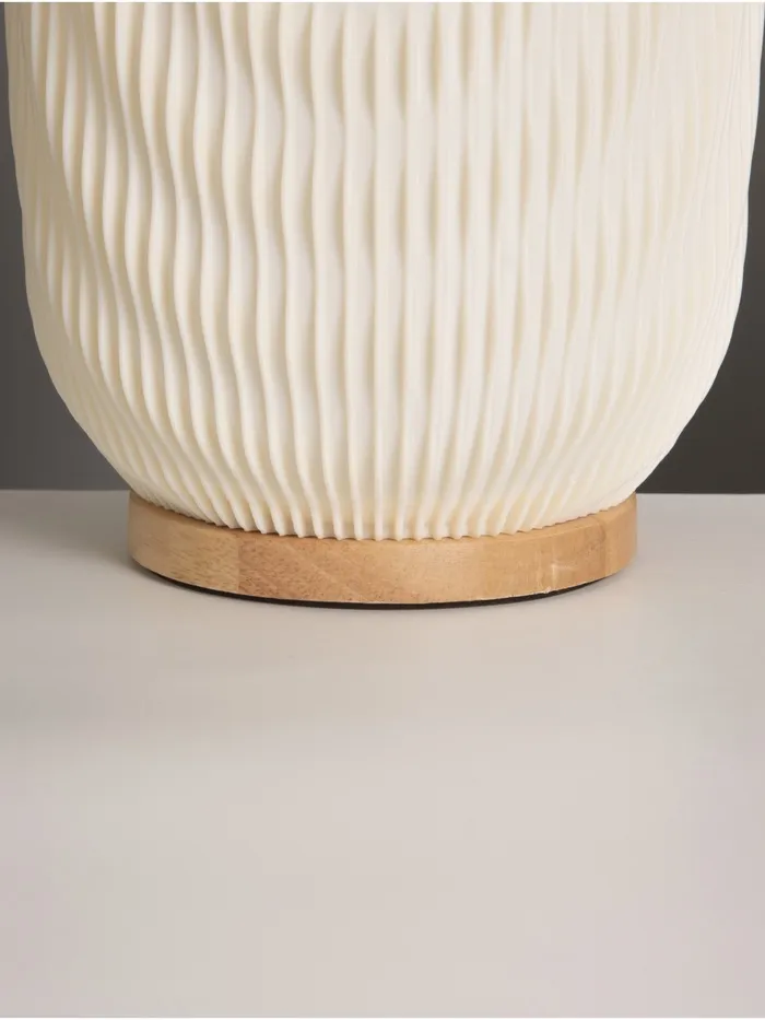 Стильный настольный светильник с каплевидным дизайном станет прекрасным дополнением вашего интерьера. С размерами 16х16х30 см, он идеально подходит для создания уютной атмосферы в любом помещении. Бежевое деревянное основание в сочетании с белым абажуром из пластика создает гармоничный и современный вид, а мягкое освещение делает его идеальным для чтения или отдыха.