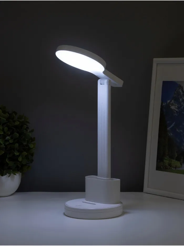 - Металлическое основание и пластиковый рассеиватель обеспечивают долговечность и легкость в уходе.