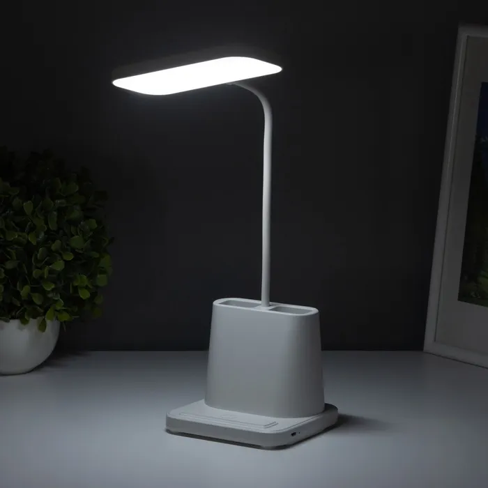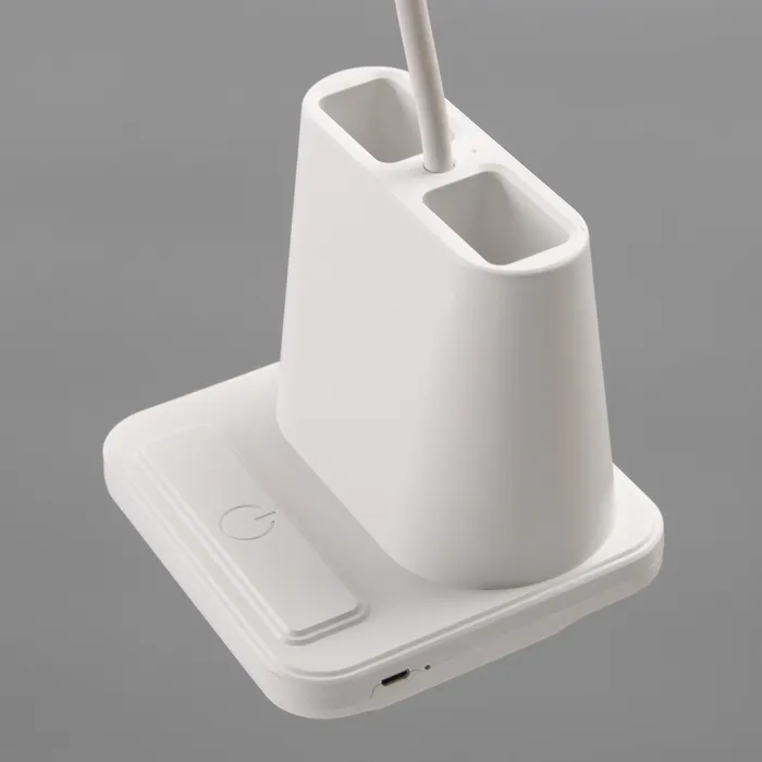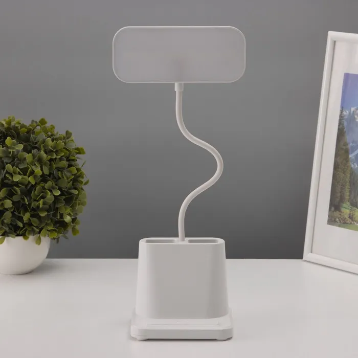 Эта лампа не только освещает вашу рабочую зону, но и способствует эффективной организации. С подставкой для ручек вы сможете легко поддерживать порядок, а возможность регулировки освещения помогает адаптировать свет под ваши нужды. Выберите эту лампу для повышения комфорта и продуктивности в работе.