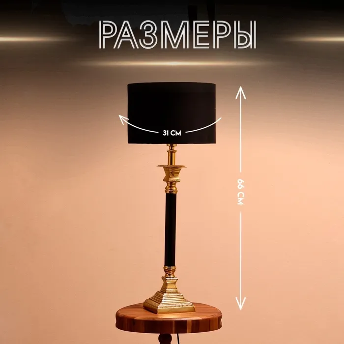 Светильник настольный" Стил" 1х60Вт, Е27 золотисто-чёрный 31х31х66 см — Характеристики