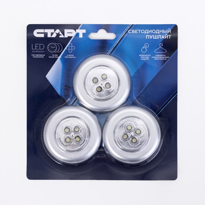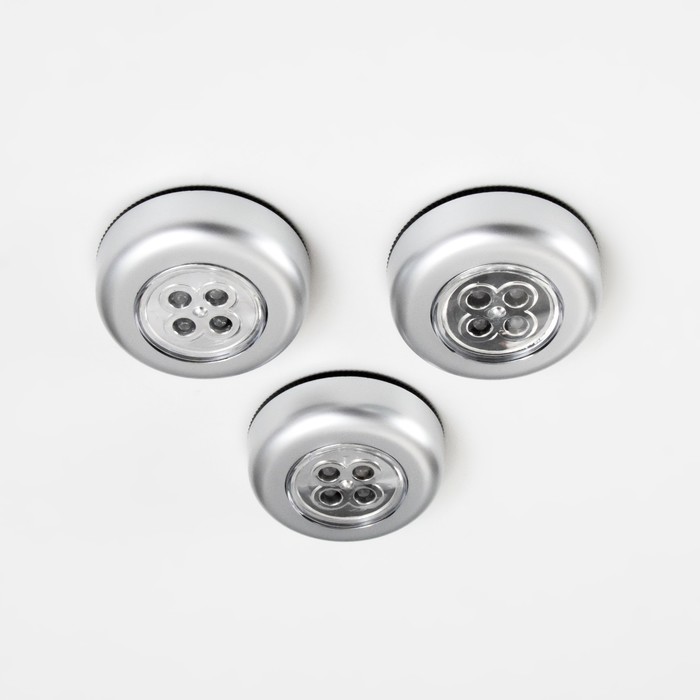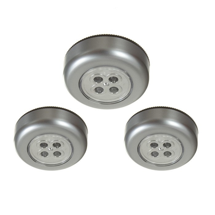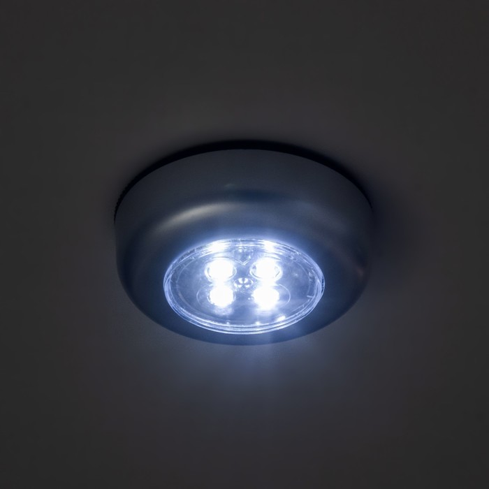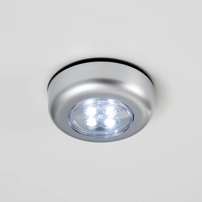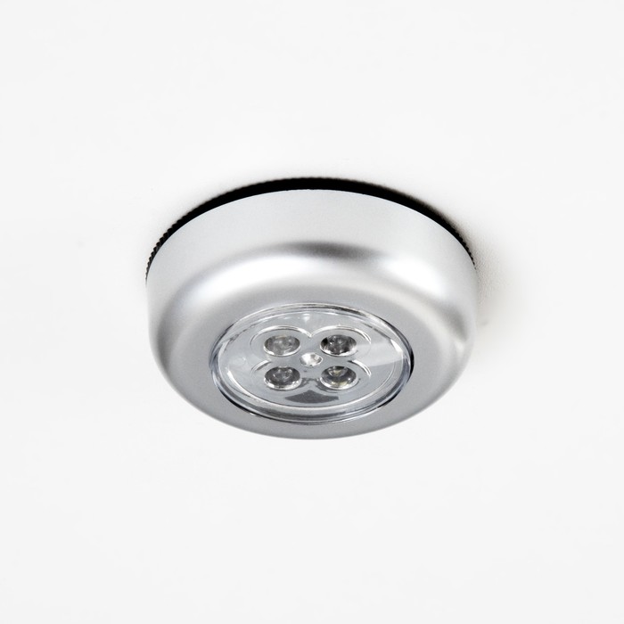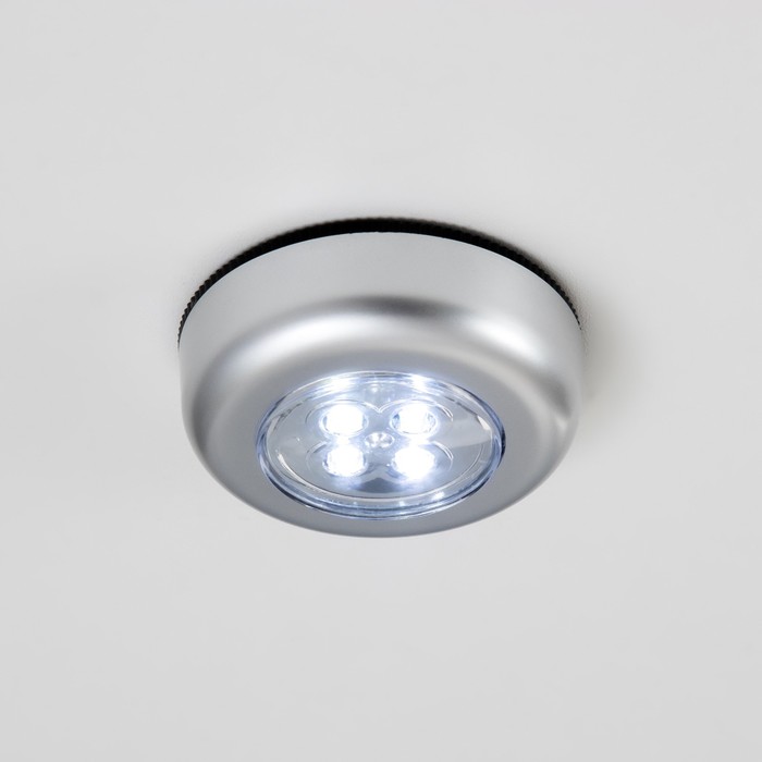Светильник ночник "Пушлайт" 4xLED 1,5Вт батарейки AAA 7см. серебро — Характеристики