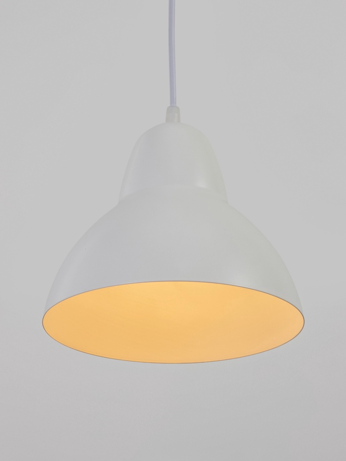 Чистый свет и лаконичная форма для вашего интерьера. Подвесной светильник с белым плафоном — это простое и эффективное решение для локального освещения. Конусный абажур из металла создает направленный поток света, формируя уютную атмосферу в зоне его установки.