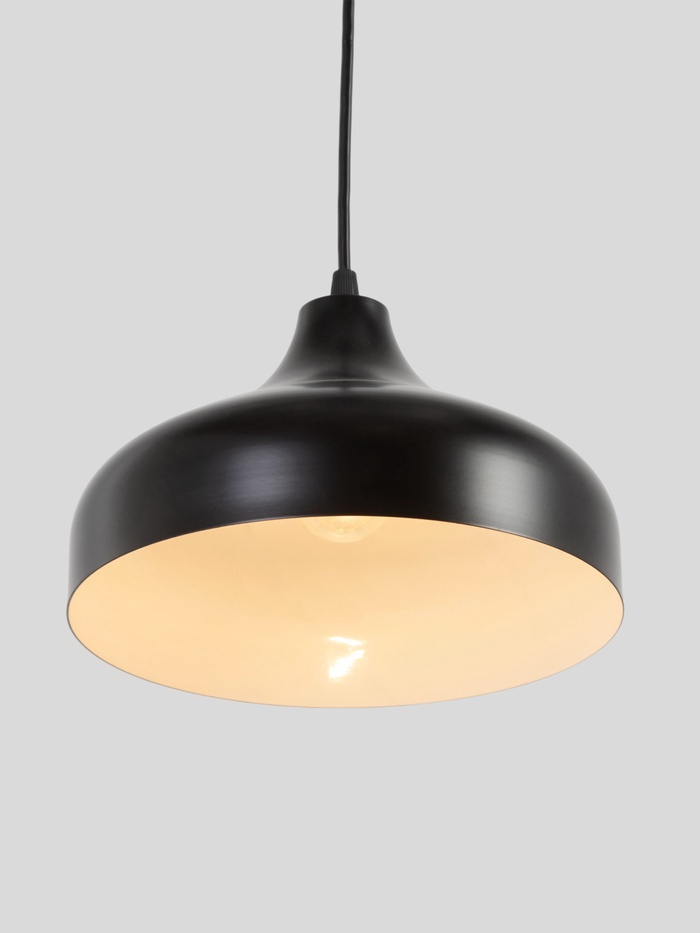Строгий акцент для интерьера в индустриальном стиле. Подвесной светильник с черным плафоном — это лаконичная модель с формой бокала. Матовая поверхность поглощает часть света, создавая сдержанное и направленное освещение.