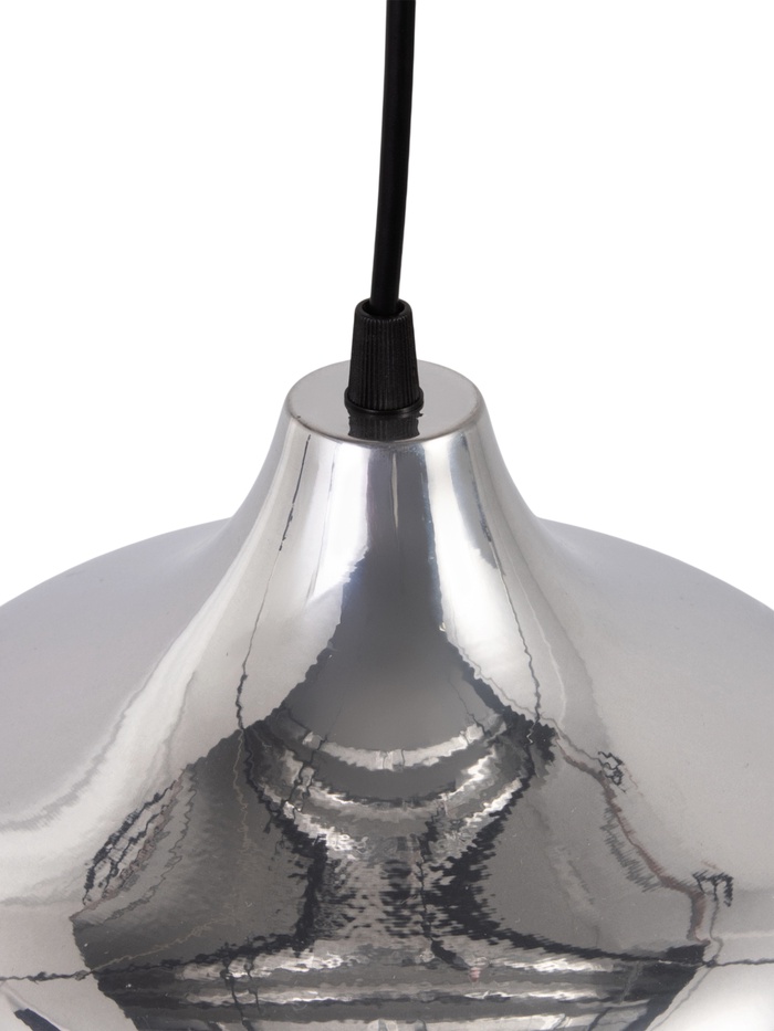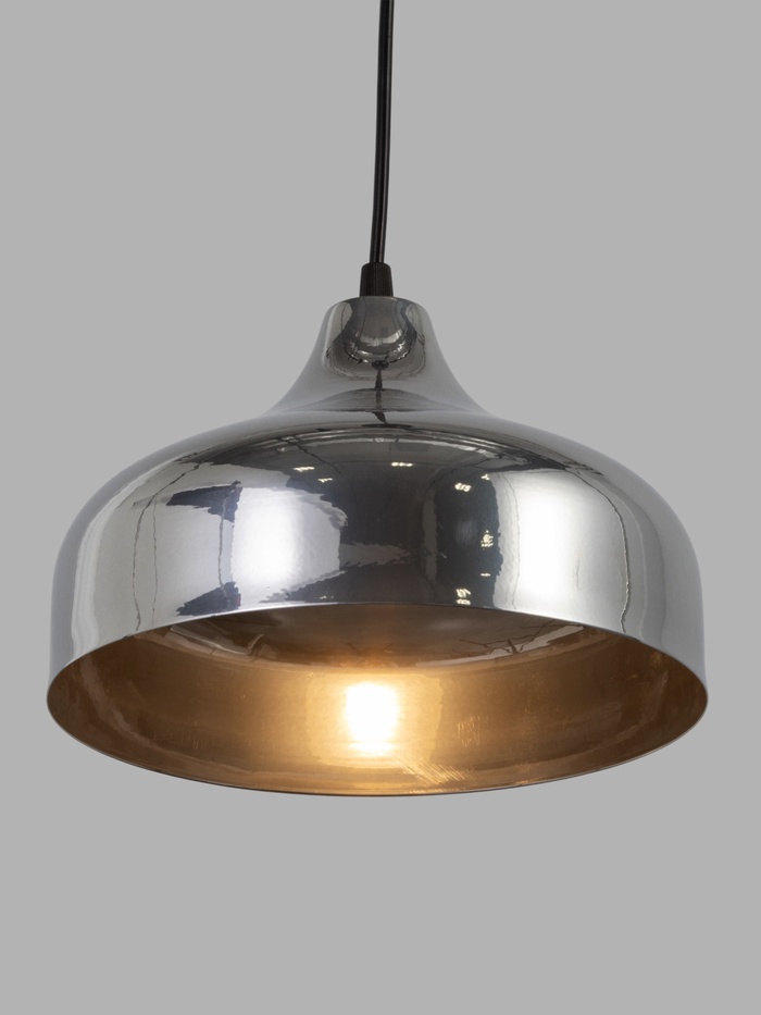 Металлический блеск для современного интерьера. Подвесной светильник с хромированным плафоном — это модель с выразительной формой и зеркальной поверхностью. Плафон в виде бокала отражает свет и окружающее пространство, создавая сложный световой рисунок.