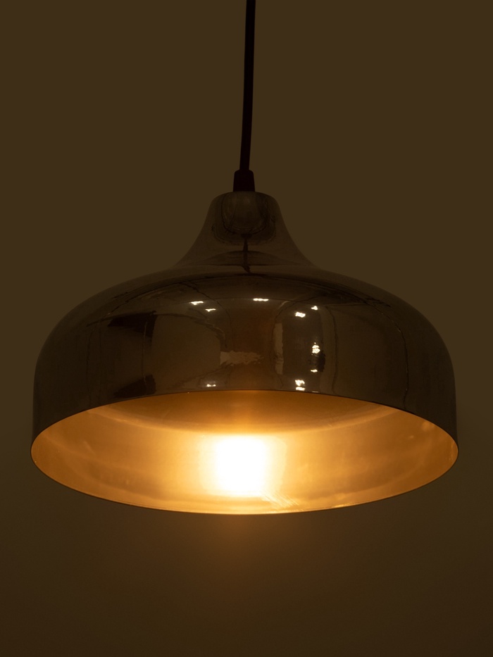Что важно учесть: Лампу нужно покупать отдельно. Вы можете установить классическую лампу накаливания или аналогичную светодиодную для экономии электроэнергии. Этот подвесной светильник становится активным элементом обстановки, меняя восприятие пространства за счет своих отражающих свойств.