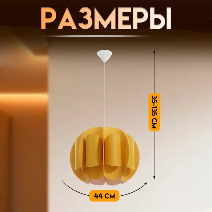 Светильник подвесной BayerLux «Сарри», Е27 15 Вт, жёлтый, 44×44×35-135 см — Характеристики