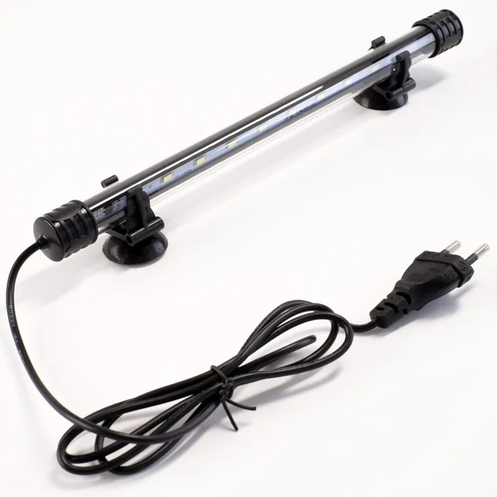 Подводный светильник – отличный выбор для освещения аквариумов, в которых не предусмотрена крышка. Их свет аналогичен естественному дневному освещению, что благоприятно сказывается на аквариумных растениях и рыбках.