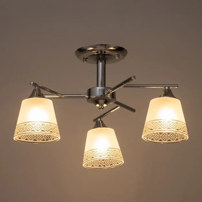 • Эстетика и функциональность: Хромированный цвет и классическая форма плафонов подчеркивают стиль помещения, а светлые тона создают уютное освещение.