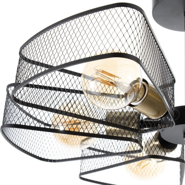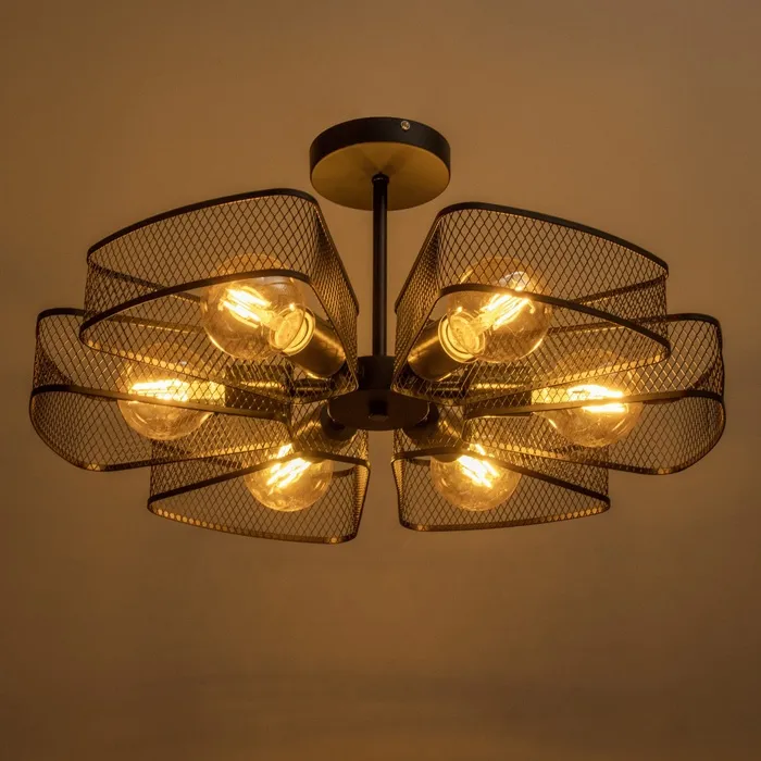 - Оригинальные плафоны: плафоны выполнены в форме сетчатых конусов, что создает интересный визуальный эффект и рассеивает свет.